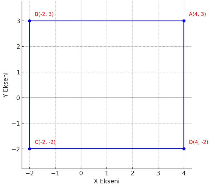 1) Koordinat sisteminde verilen A(4,3), B(-2,3), C(-2,-2) ve D(4,-2) noktalarının birleştirilmesi ile oluşan ABCD çokgeninin çevresinin uzunluğu kaç birimdir?