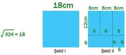 9) Alanı 324 cm² olan Şekil I’deki kare biçimindeki karton kesilerek Şekil II’deki gibi 4 tane özdeş dikdörtgen ve kare biçiminde bir parça elde edilmiştir.