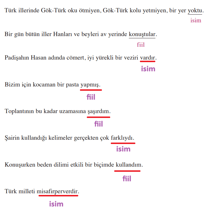 b) Okuduğunuz metinden isim ve fiil cümlelerine üçer örnek yazınız.