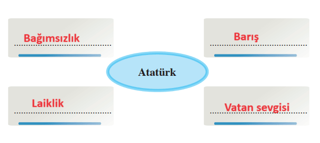 Düşünce, duygu ya da ilkeleri kısa ve öz bir biçimde anlatan sözler “özdeyiş” olarak adlandırılır. Özdeyişleri kimin söylediği bellidir. Mustafa Kemal Atatürk’ün aşağıdaki özdeyişlerini okuyunuz. Atatürk’ün bu özdeyişlerle ne anlatmak istediğini altlarına yazınız.
