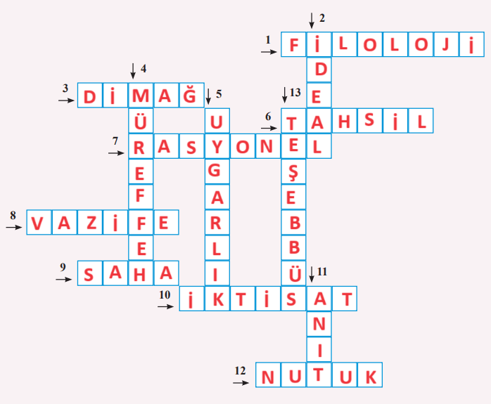 10. Anlamları verilen kelimeleri bularak bulmacadaki yerlerine yerleştiriniz.