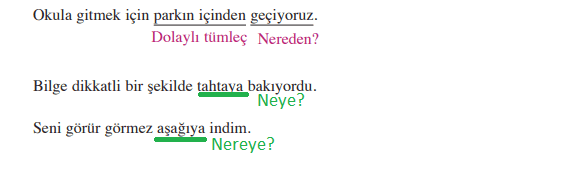 Aşağıdaki cümlelerin dolaylı tümleçlerini gösteriniz. Dolaylı tümlecini bulmak için yükleme sorduğunuz soruyu yüklemin altına yazınız.