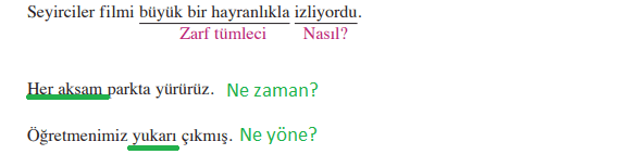 Aşağıdaki cümlelerin zarf tümleçlerini gösteriniz. Zarf tümlecini bulmak için yükleme sorduğunuz soruyu yüklemin altına yazınız.
